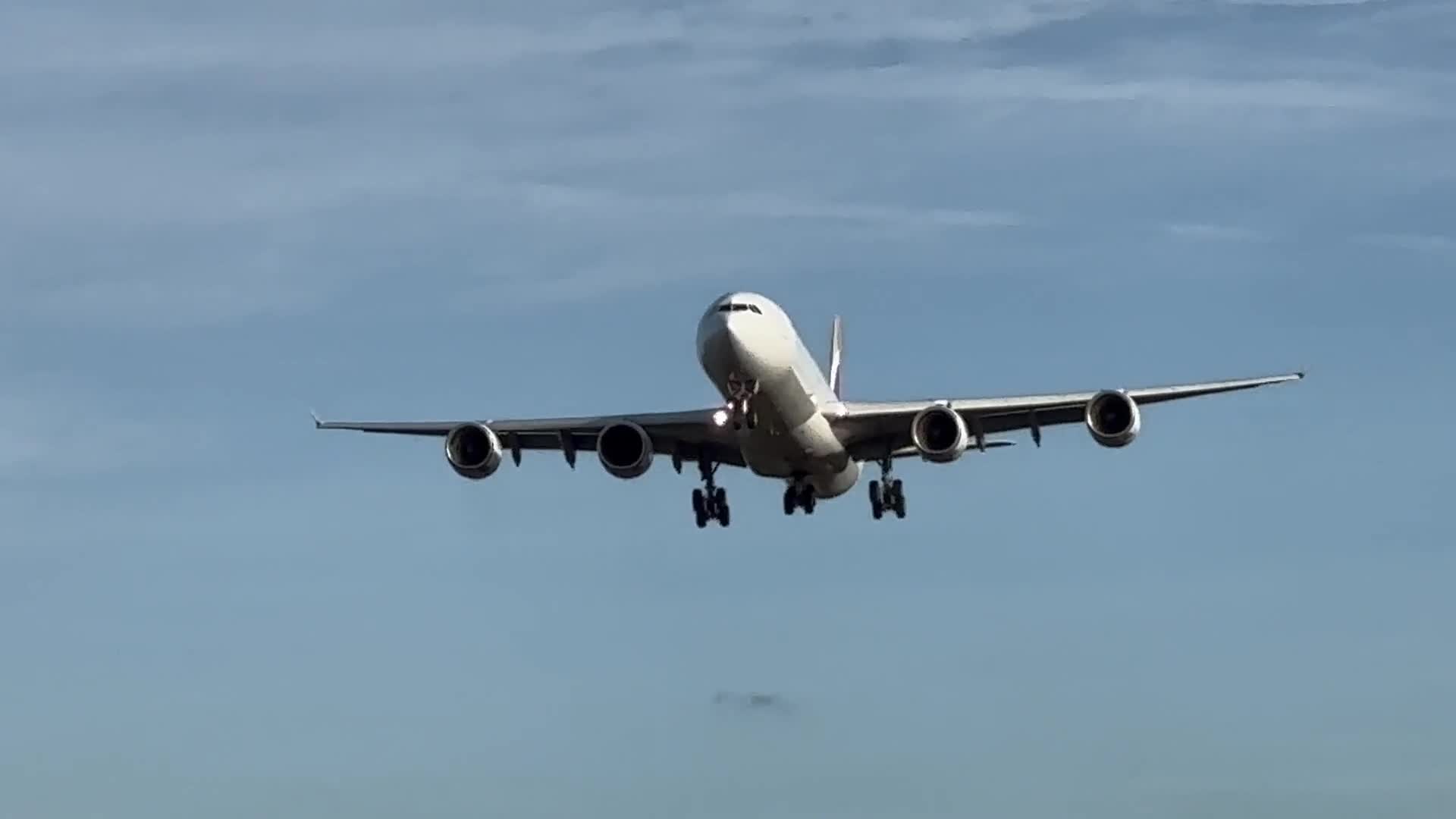 an amazing up close a340-600 with a 300mm lens citing right up to the pilots!